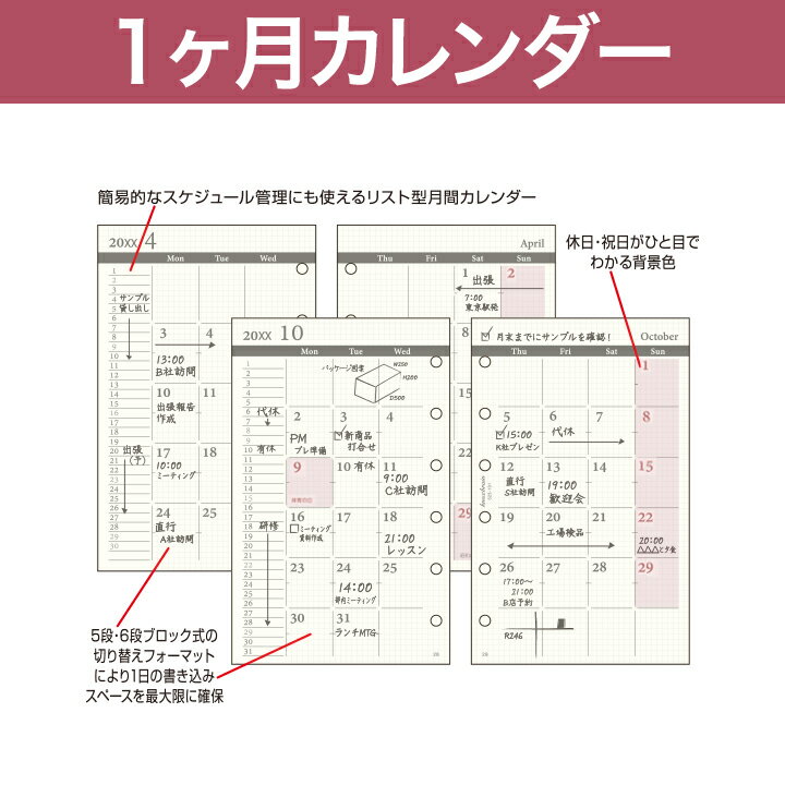KNOX-ノックス-(システム手帳用リフィル) 【リフィル ミニ】見開き1ヶ月間ブロック式 20枚 日付無し(日付を自分で書き込むタイプ) ■商品ページはこちら>> 2017年版より、パッケージと紙が新しくなりました。